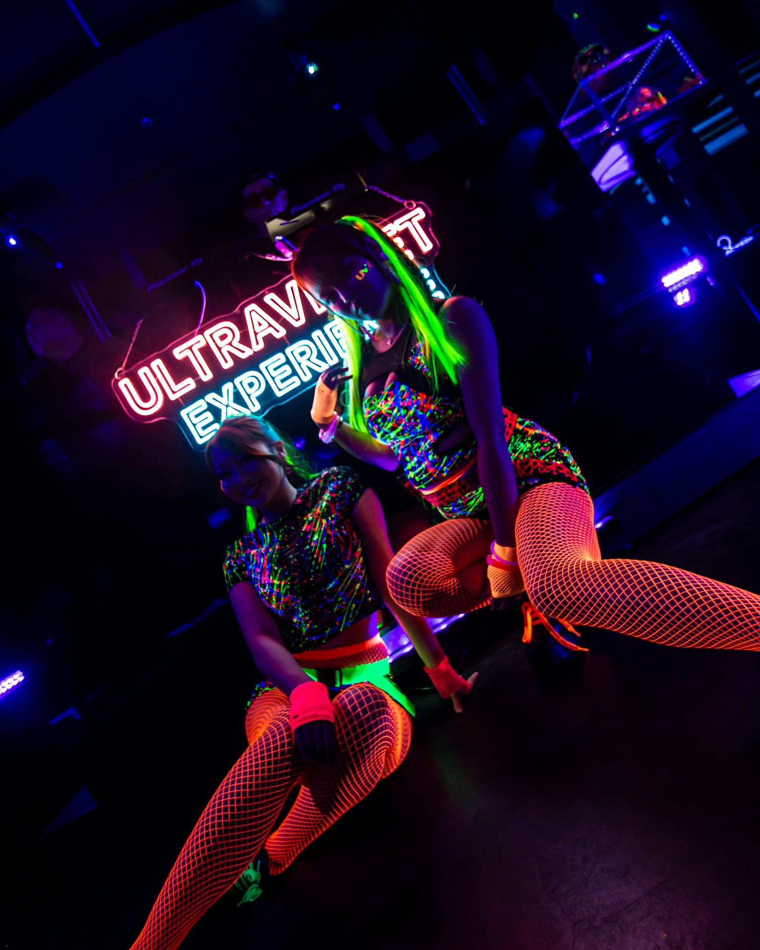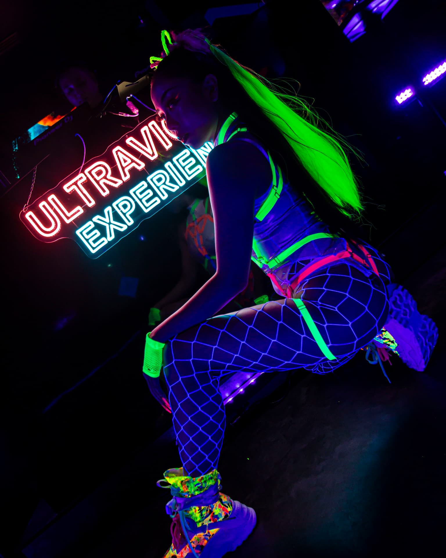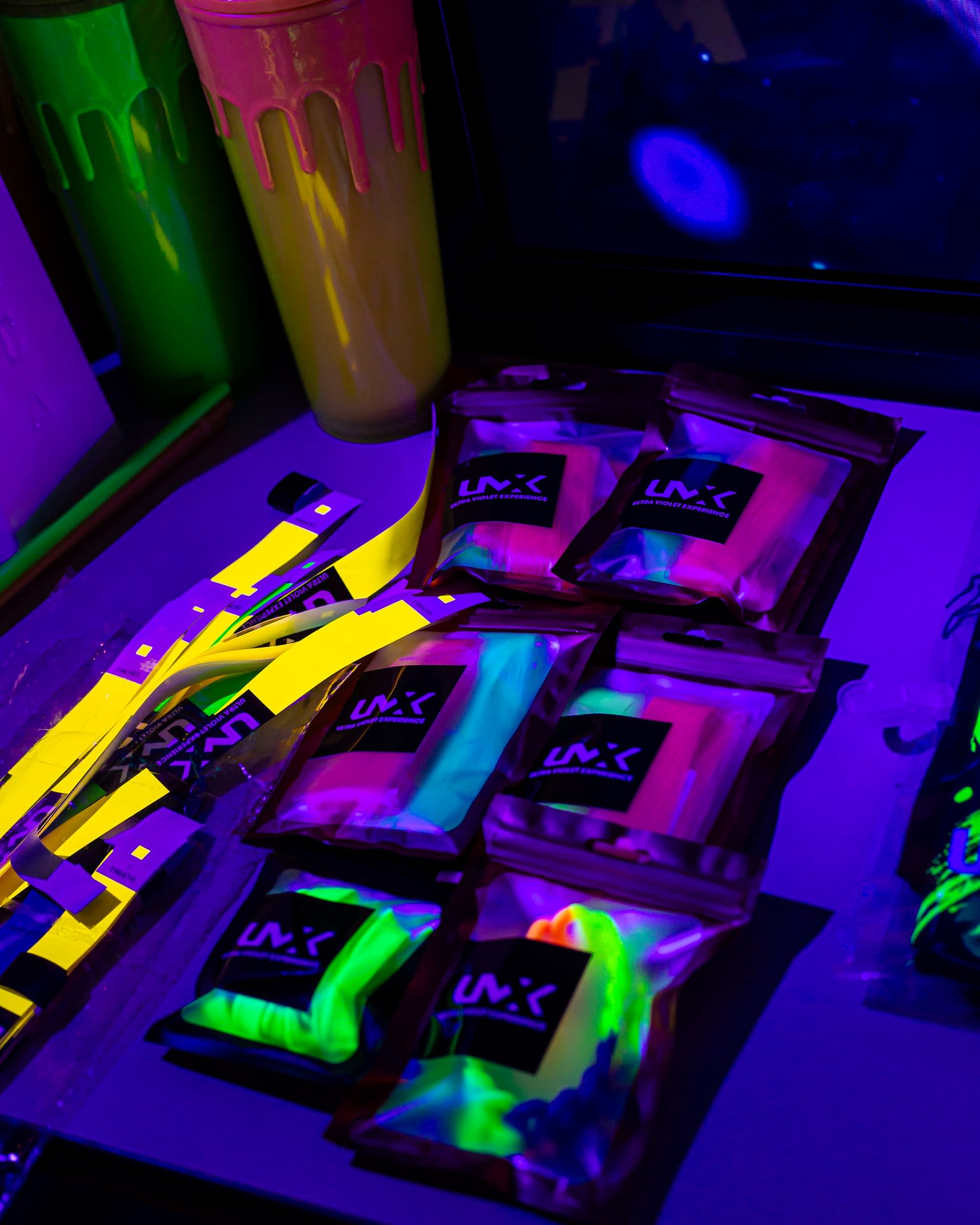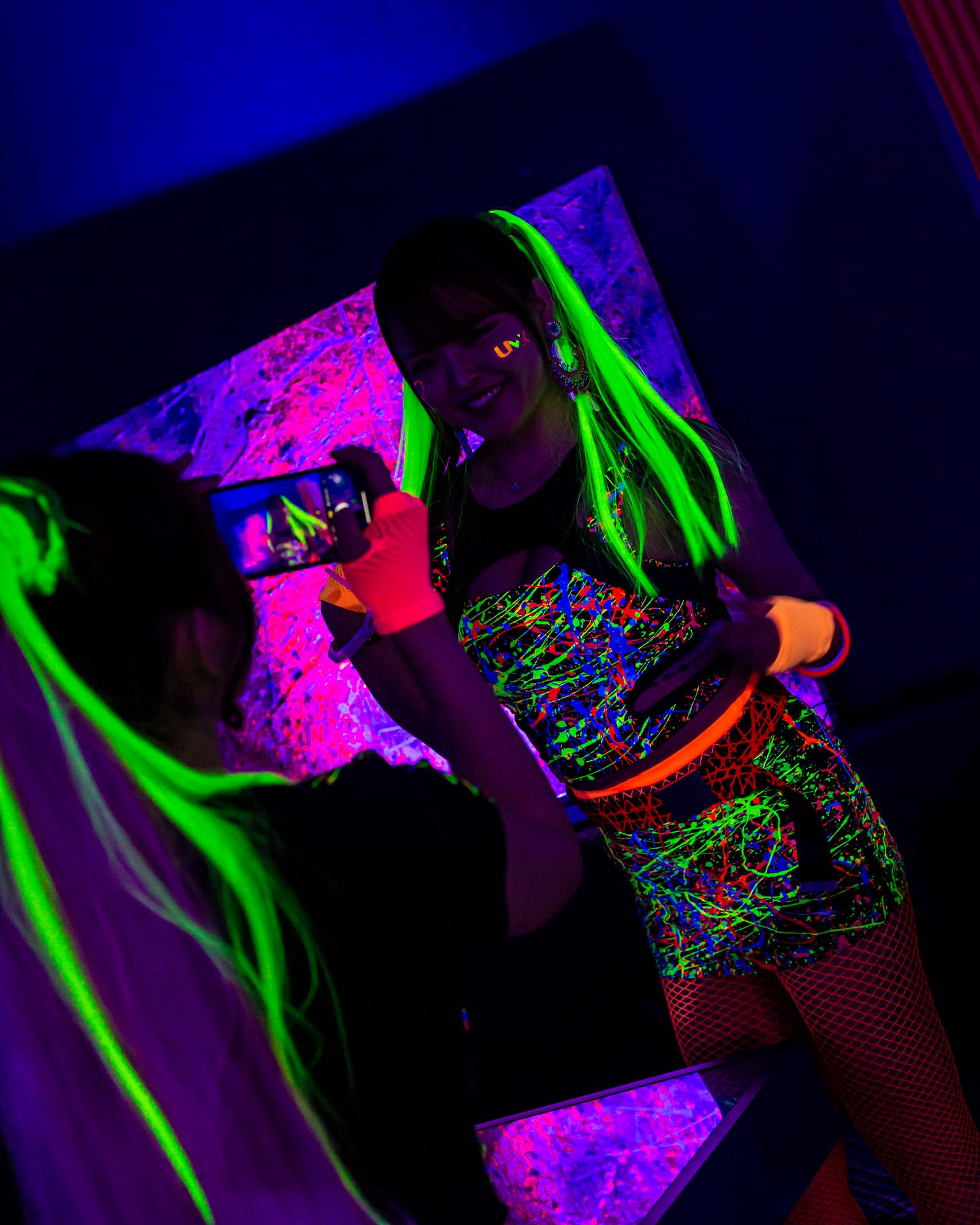 Each event takes place under UV-reactive blacklight, where neon colors like pink, green, and yellow come alive, glowing with energy and transforming the space into a living artwork.