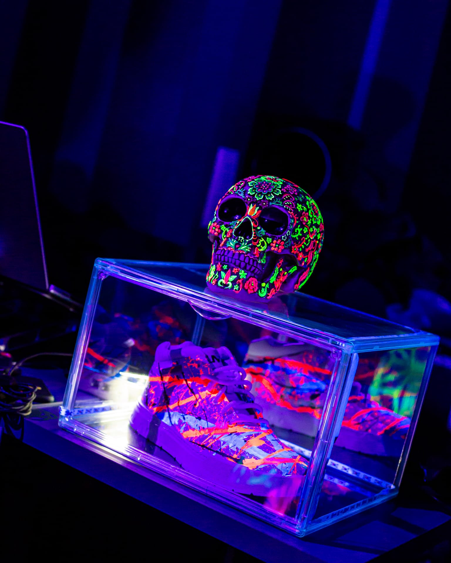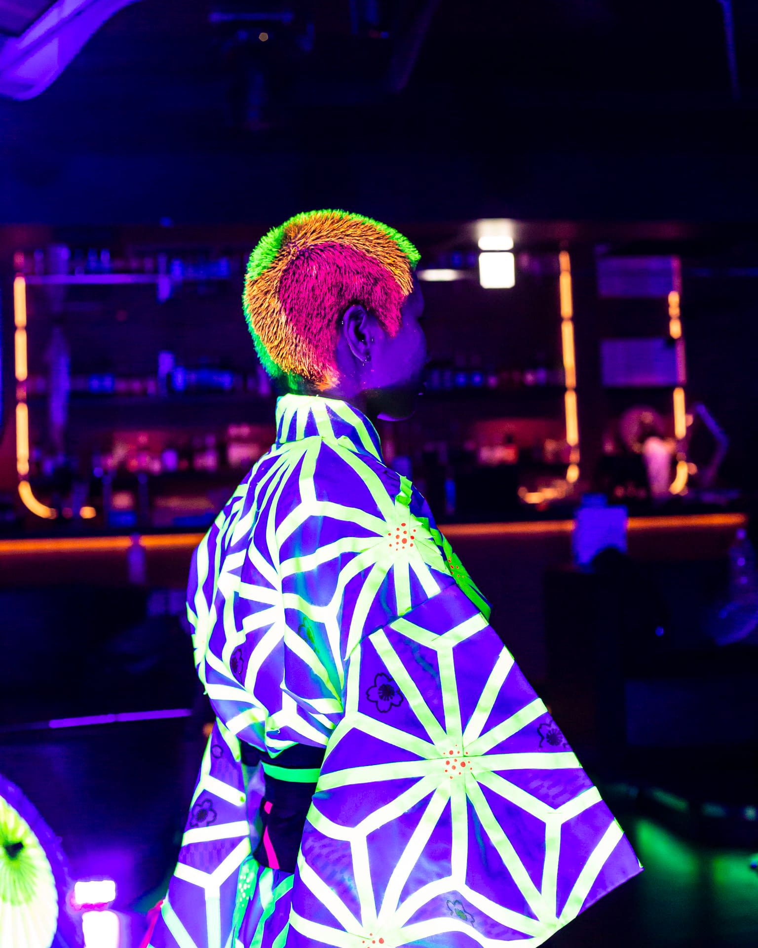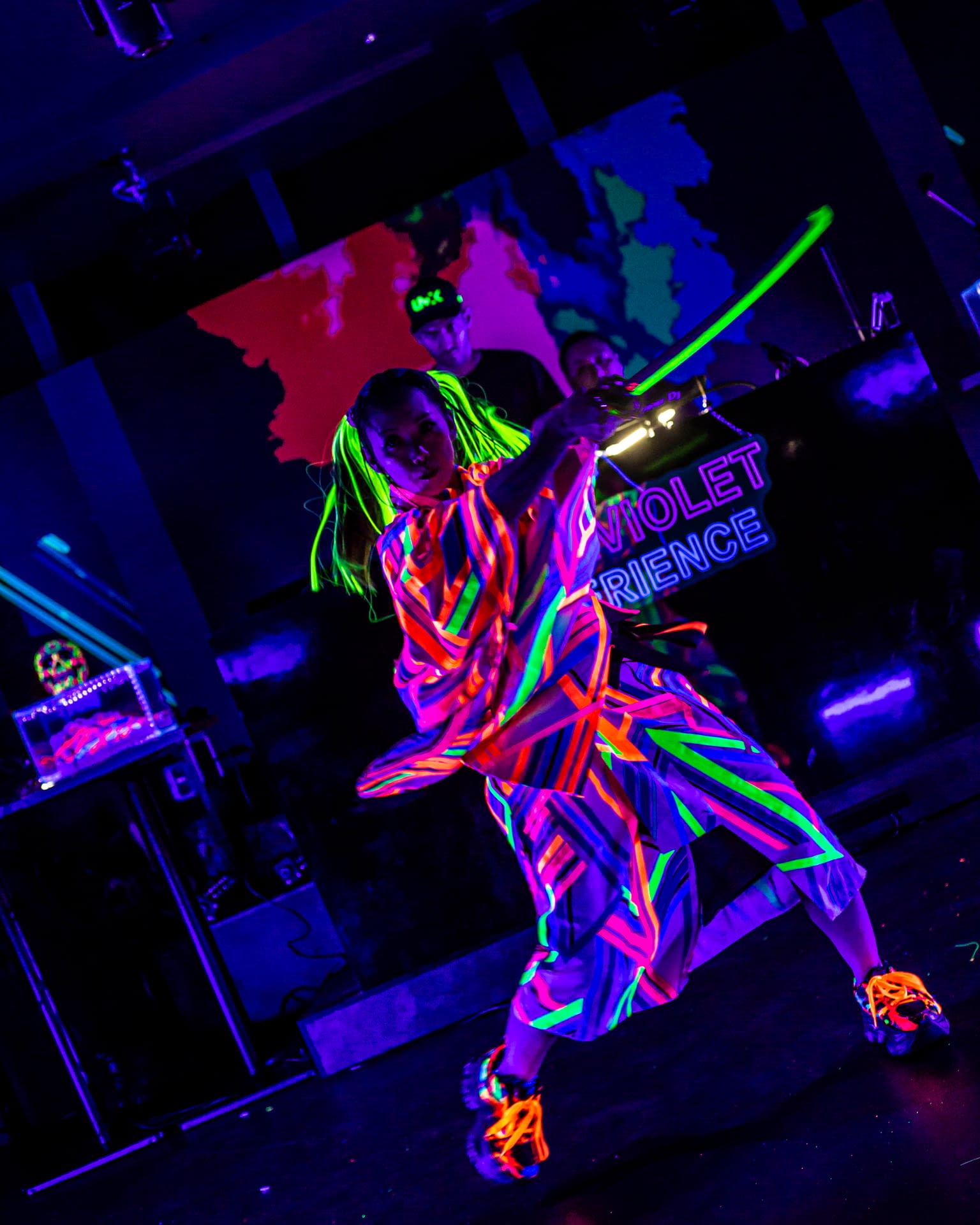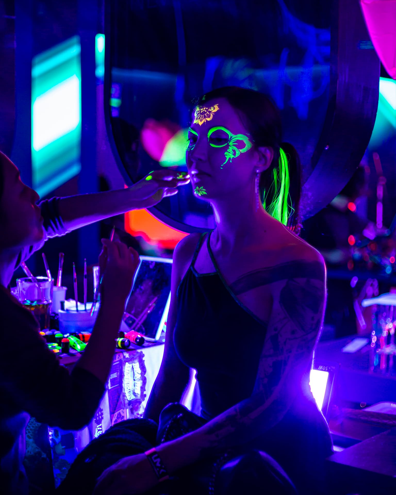 Each event takes place under UV-reactive blacklight, where neon colors like pink, green, and yellow come alive, glowing with energy and transforming the space into a living artwork.